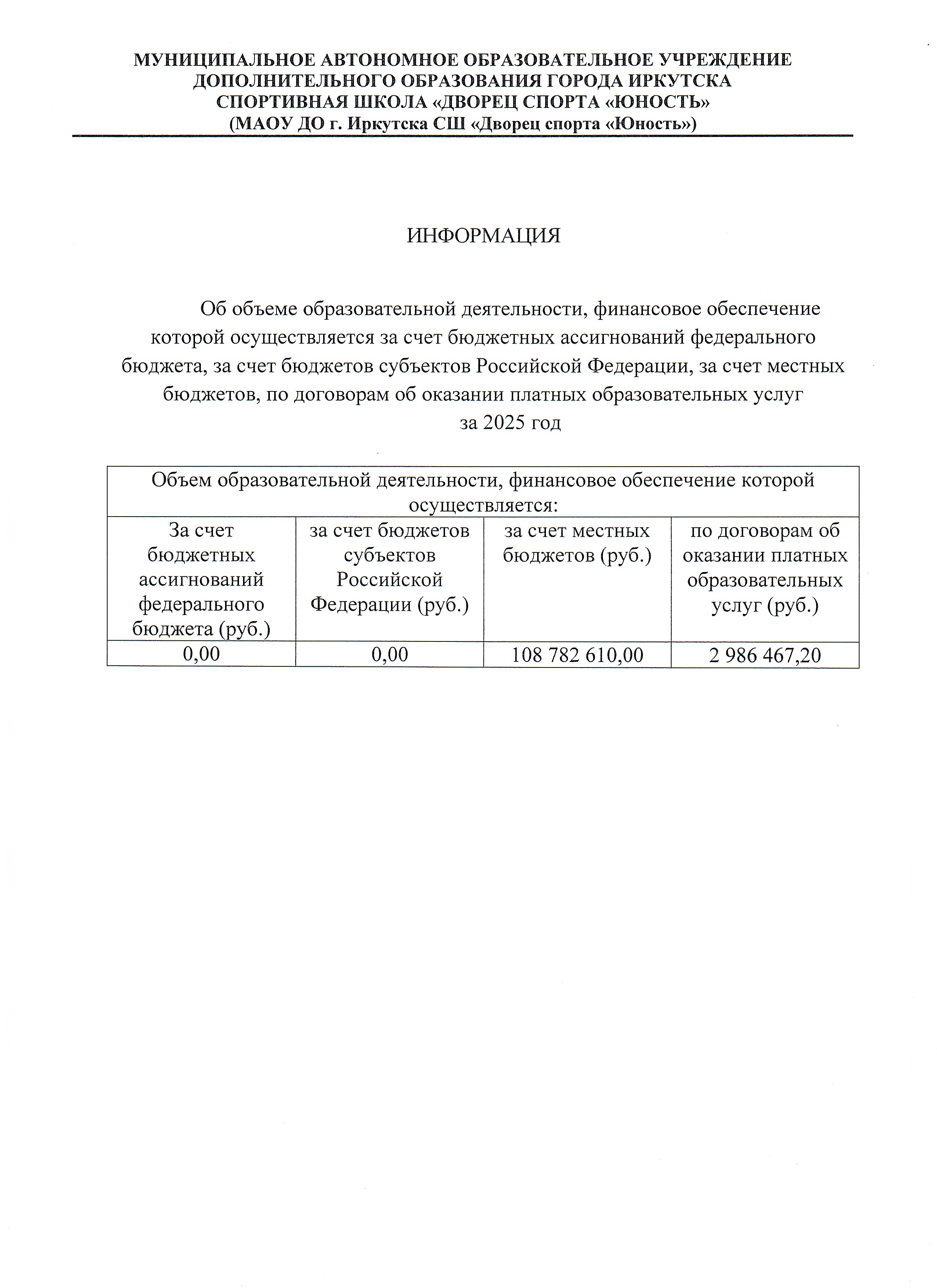 Информация об объеме образовательной деятельности за 2025 год